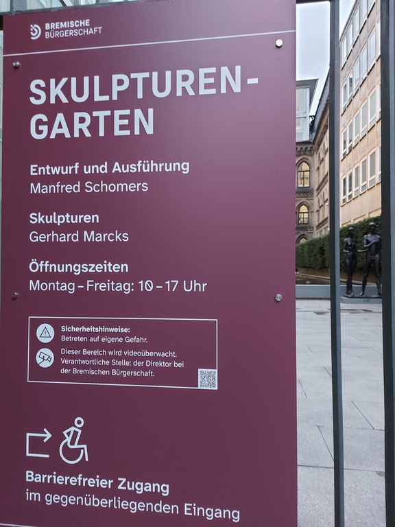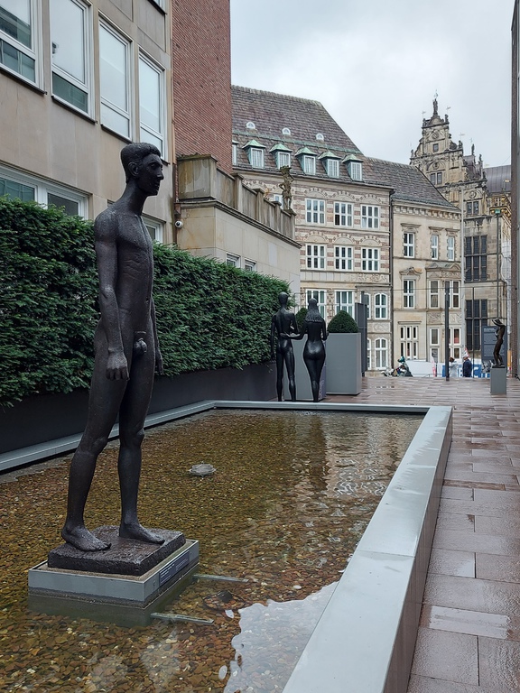 Der Skulpturengarten neben dem Haus der Bürgerschaft feiert Geburtstag: seit 20 Jahren stehen dort die Bronzeskulpturen des Künstlers Gerhard Marcks als Leihgaben des Gerhard-Marcks-Hauses. Sitzgelegenheiten, ein Springbrunnen und ein paar Pflanzen vervollständigen das Areal.